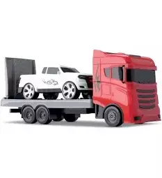 Com rampa articulada, o caminhão permite rebocar e descarregar o carrinho com facilidade, estimulando a imaginação, a coordenação motora e a criatividade das crianças. Feito em plástico resistente e seguro, é ideal para horas de diversão.