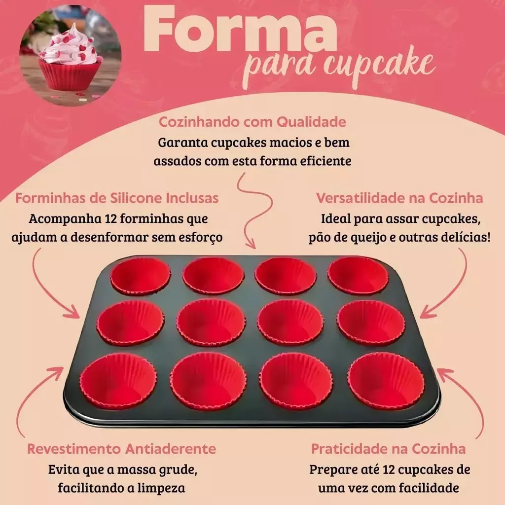 Forma para Cupcake Antiaderente com Forminhas de Silicone – Praticidade e Estilo na Sua Cozinha!